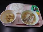 今日の給食は、ソフトめんチャンポン、じゃがいものごまがらめ、牛乳でした。