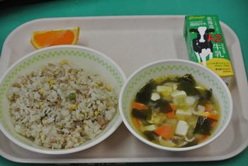 今日の給食は、そぼろご飯、道産子汁、きよみ、牛乳でした。