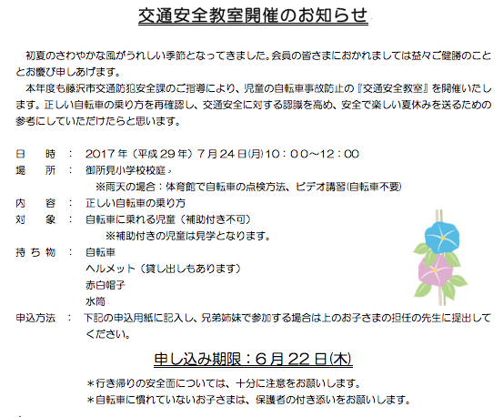 【校外】交通安全教室開催のお知らせ