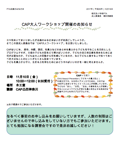 【成人】 CAPワークショップ開催のお知らせ