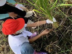 10/2、5年生が6月の田植えに続いて稲刈りに挑戦しました。