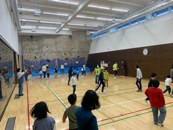 目は宿泊した県立スポーツセンターのアリーナでレクリエーシ