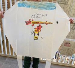 が、元気に自分で作った凧をあげていました!