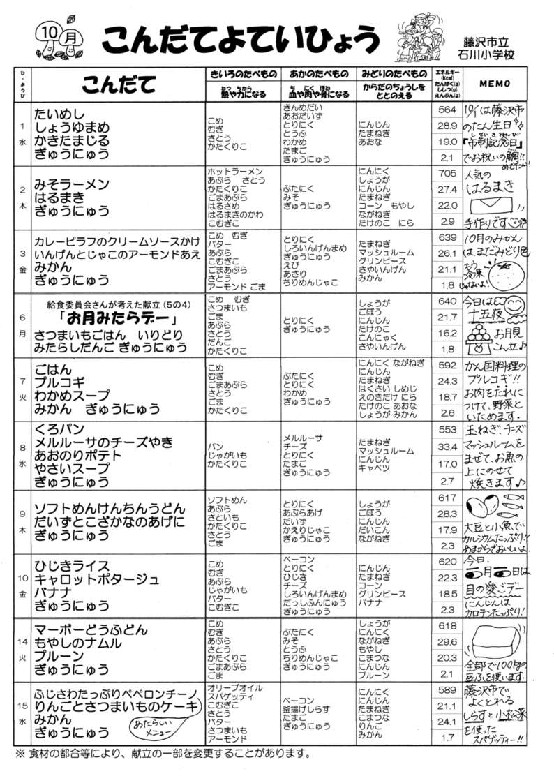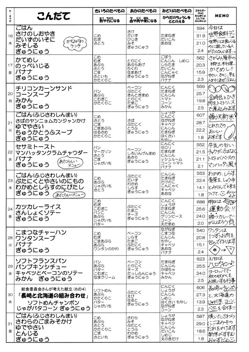 10月献立予定表