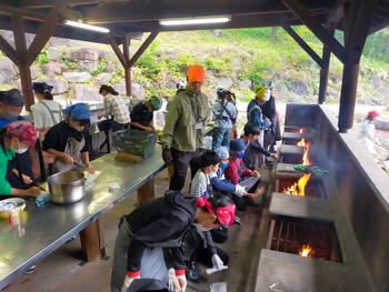 この後は、野外炊事で、夕食のカレーづくりです。