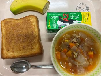 ミネストローネスープに近い感じで、あさりの風味のいきた、野菜ゴロゴロ具だくさんスープです。