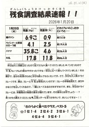 そして、昨日のドライカレー献立の残食調査結果です↓
