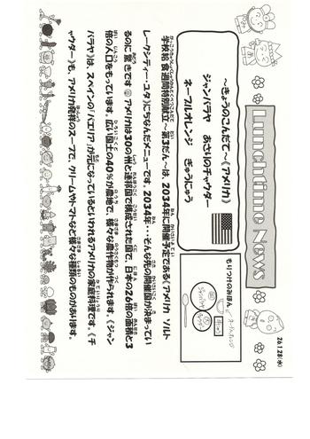 今日は、2034年!に開催予定のアメリカ合衆国にちなんだ献立です。