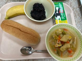 黒ごまあんパンと、すいとん汁です!
