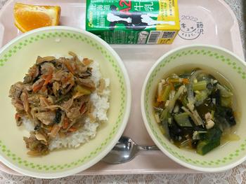 食後の果物、清見オレンジもさっぱりおいしくいただいた、今日の給食でした。