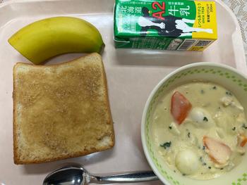 うずら卵が入ったクリームシチューは、かなり昔からある、藤沢市給食献立の一つです。