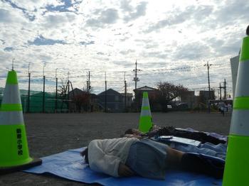 グラウンドの真ん中には、シートが置いてあり、寝そべって見えるものや聞こえてくる音を感じます。