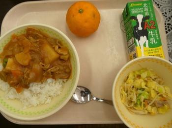 12月15日(月)ハヤシライス やさいいため みかん 牛乳