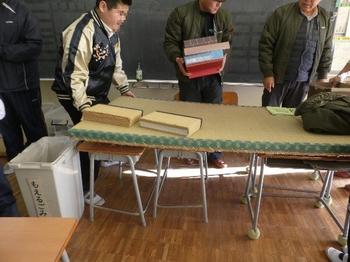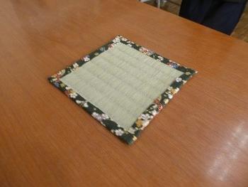 駒寄学級に畳店の方々が来て、たたみについてのお話と畳をつかったコースターやストラップ作りを教えてくださいました。