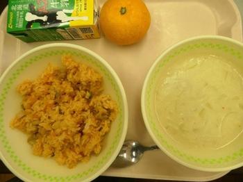 12月10日(水)チキンライス まめのポタージュ みかん 牛乳