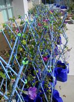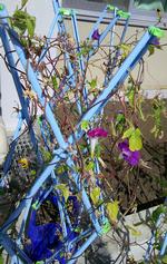 1年生が育てていた朝顔は、最盛期を過ぎ、花もまばら。
