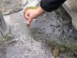 した10円玉を源泉に入れ、化学変化による色の移り変わりを楽しむ様子もありました。