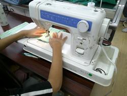子ども達は、直線縫いや返し縫い、方向変換時の操作等、練習布を使いながら集中して作業に取り組んでいました。