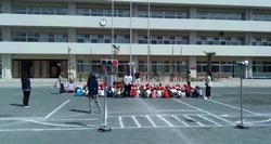 子ども達は、運動場に設置されたコースを歩く体験を通し学んでいきました。