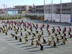 10/25の運動場での練習では、高学年の表現を見ていた下学年から拍手が沸き起こる場面もありました。