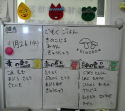 給食委員の児童が担当している献立お知らせボードに、おいしそうなキノコのイラストを発見!