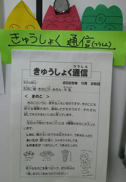 11/26は、キノコがふんだんにつかわれた給食でした。