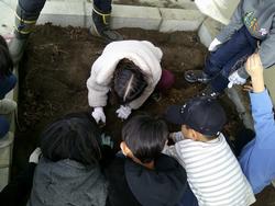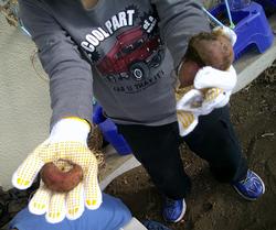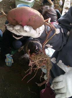 「まだ、おイモ出てこないなー」「小っちゃいおイモ、があった!」等などの声をあげながら、土を掘り起こしていきます。