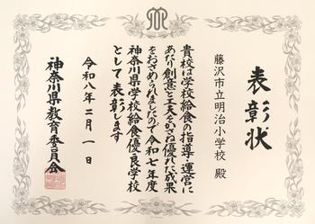 神奈川県学校給食優良学校として、明治小学校が表彰されました。