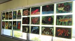 廊下にはいろいろな学年のいろいろな作品が掲示されています。