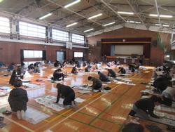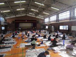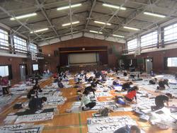 今日は5年生が体育館で書き初めです。