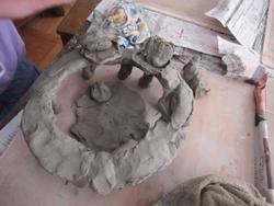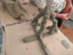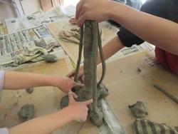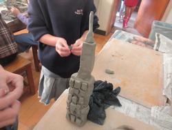 ねんどでタワーを作っている2年生。