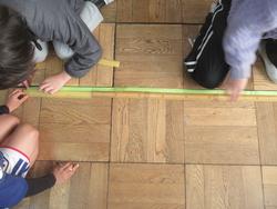 2年生がものさしで長さを測っています。