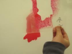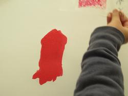 型をぬいた枠を紙の上に置いて、絵の具を塗りました。