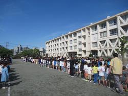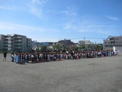 朝会の列に入って、あらためてみんなの仲間入りです。