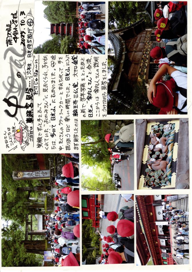 中里の風 子どもたちに感謝です(六年生 日光修学旅行)