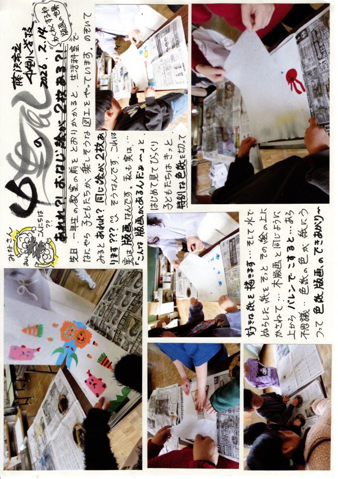 中里の風 あれ⁉ おなじ絵が2枚ある⁈(一年生 版画の世界)
