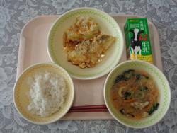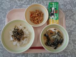 ごはん ふりかけ とりにくと だいずのうまに みそしる ぎゅうにゅう |