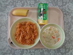 ジャンバラヤ あさりのチャウダー バナナ ぎゅうにゅう |
