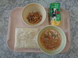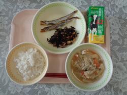 ごはん ししゃものひもの ひじきのいりに りきゅうじる ぎゅうにゅう |