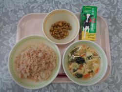 【市制記念日献立】 たいめし しょうゆまめ かきたまじる ぎゅうにゅう |