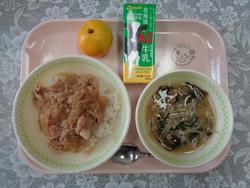 ぶたどん みそしる みかん ぎゅうにゅう |