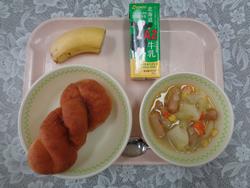 あげパン ウィンナーと やさいのスープに バナナ ぎゅうにゅう