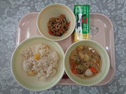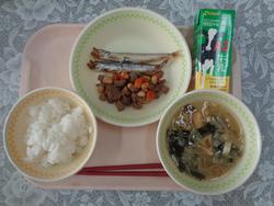 【いい歯の日献立】 ごはん ししゃものひもの だいずのごもくに みそしる ぎゅうにゅう |