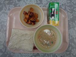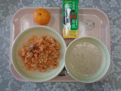 チキンライス まめのポタージュ みかん ぎゅうにゅう |