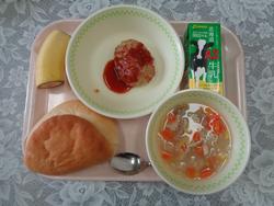 サンドパン ハンバーグ ABCスープ バナナ ぎゅうにゅう |