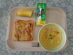 ツナトースト クリームスープ スパゲッティ バナナ ぎゅうにゅう |
