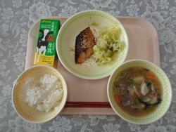 ごはん さばのみそやき ゆでやさい みぞれじる ぎゅうにゅう |
