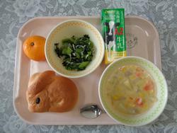 うさぎパン コーンシチュー あおなとじゃこの ソテー(新) みかん ぎゅうにゅう |