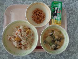 【和食の日献立】 ふきよせおこわ ぶどうまめ みそしる ぎゅうにゅう |