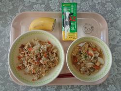 ごもくごはん きのこじる バナナ ぎゅうにゅう |